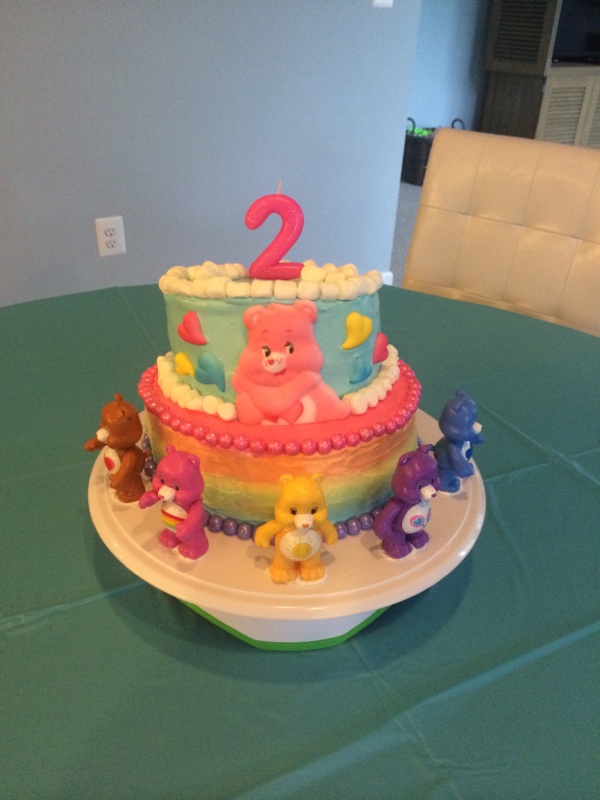 Accept that it will be a series of successes and failures. I don’t mean that each cake (or moment) will be either a success or failure, and that they can’t all be successes. Though that may be true as well. I actually mean that each one will be a unique combination of both success and failure. In any given moment, some things are working and some things aren’t. And we work towards and hope for a swing in the favor of more successes than failures. But acknowledging the flaws can help us balance them out. I accept that the back of this cake will be structurally challenged, crushed by its own cake weight. But the Carebear figures and chocolate bead balls really work and make the whole thing look “finished.” And I can rotate the cake on my rotating cake base to show it from its best angle. And this mango-scented candle will freshen the air to cover the burn smell still coming from my oven where the cake batter overflowed the pans when the cakes were baking and charred to an ever-smoking crisp. All in all, a win despite failures.
